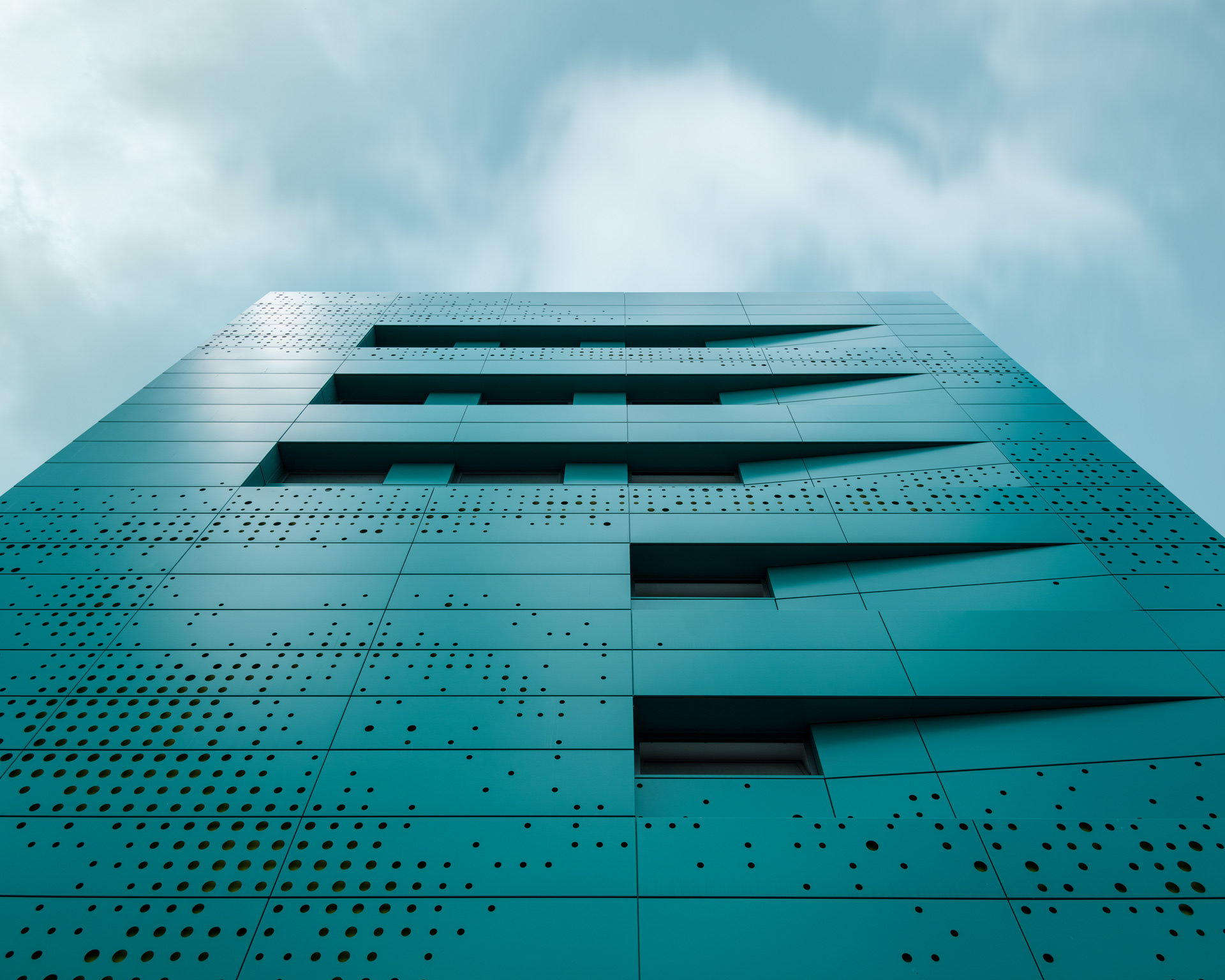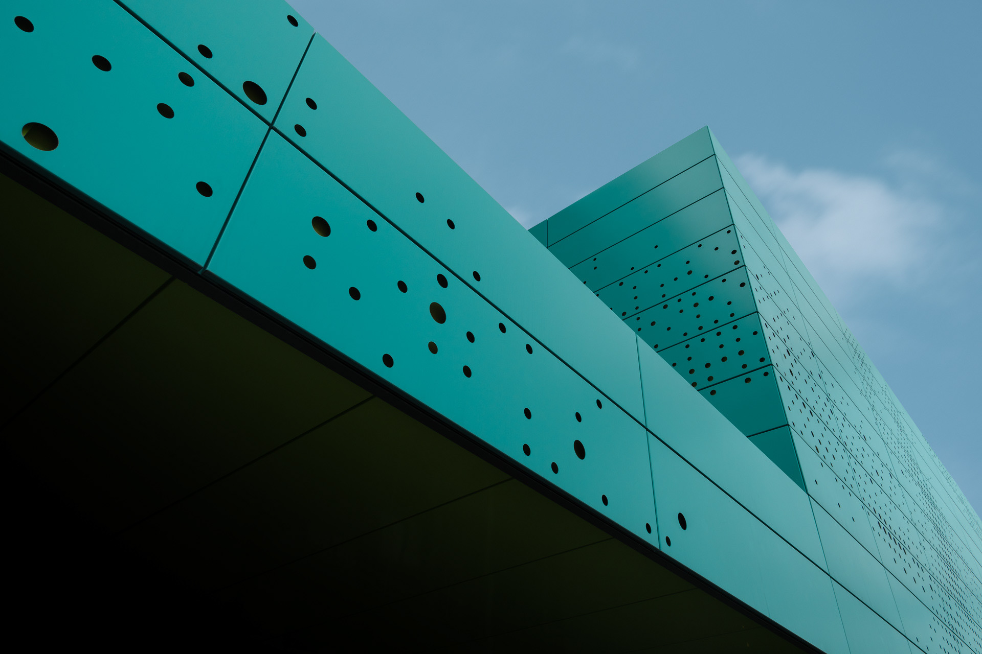 Die 3TK-Dreifeldsporthalle in Wolfsburg mit einer interessanten Rasterfassade.